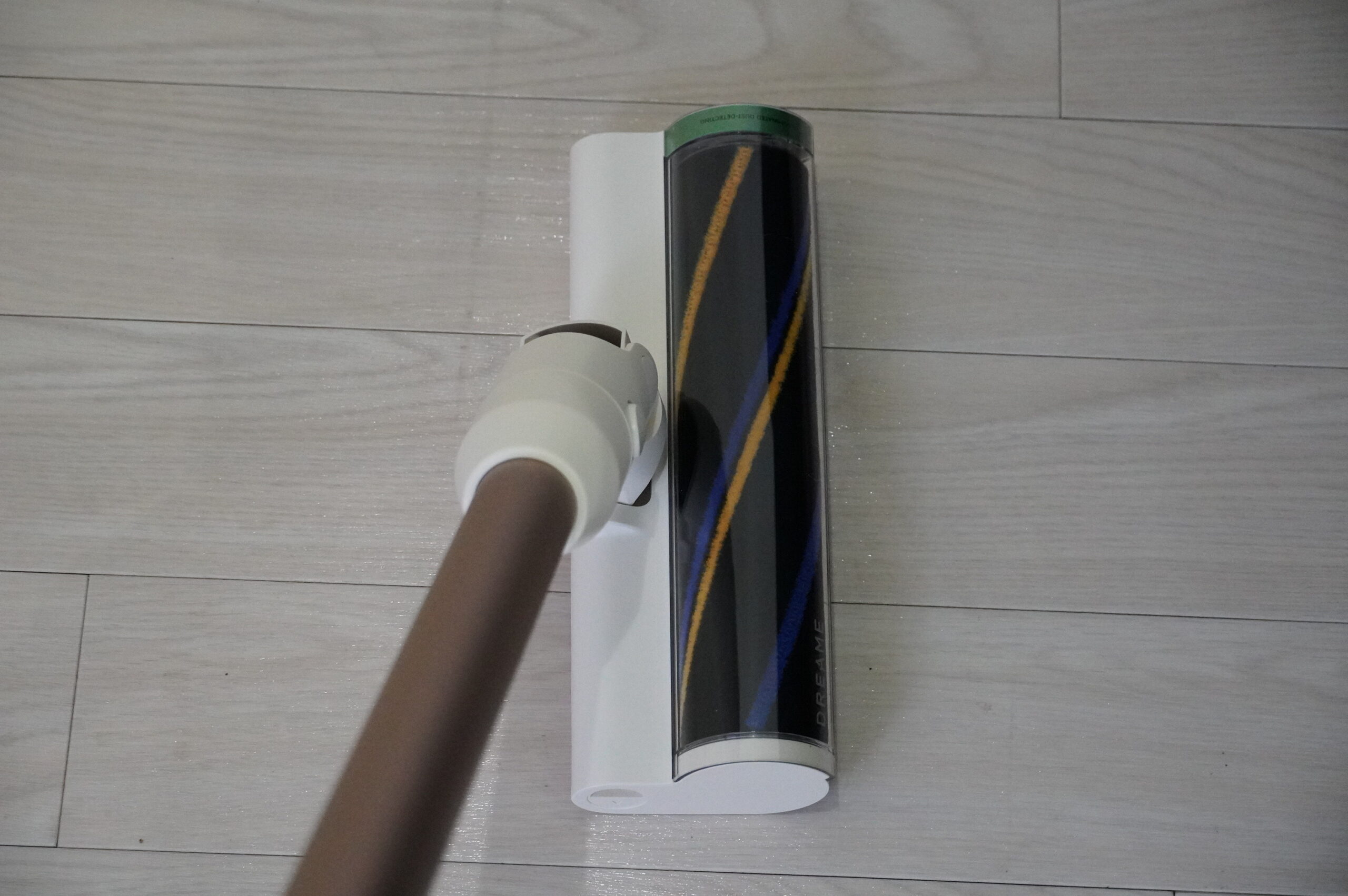 左右への動きに加え、前後方向への追従性も高く、腕の動きに自然と追従します。掃除機を動かすたびに角度を細かく意識しなくても、床の上をスムーズに滑らせるような感覚で使用できます。