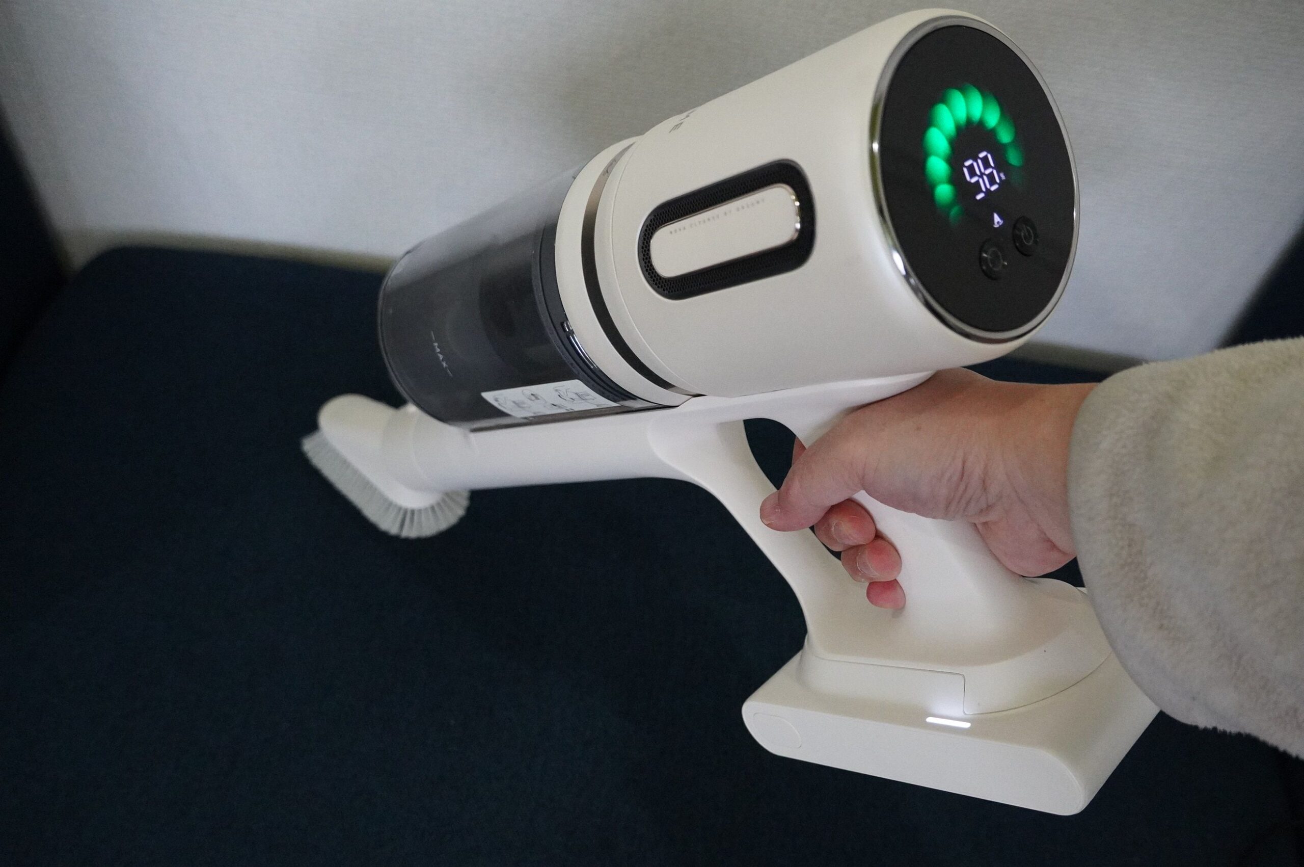 実際に使ってみて、汚れが多い場所では吸引動作が強めに働き、少ない場所では静かで省エネな動きになることが確認できました。表示部のマークやLED表示などで状況がわかる仕様になっているため、汚れのある場所では反応がわかりやすい構造です。