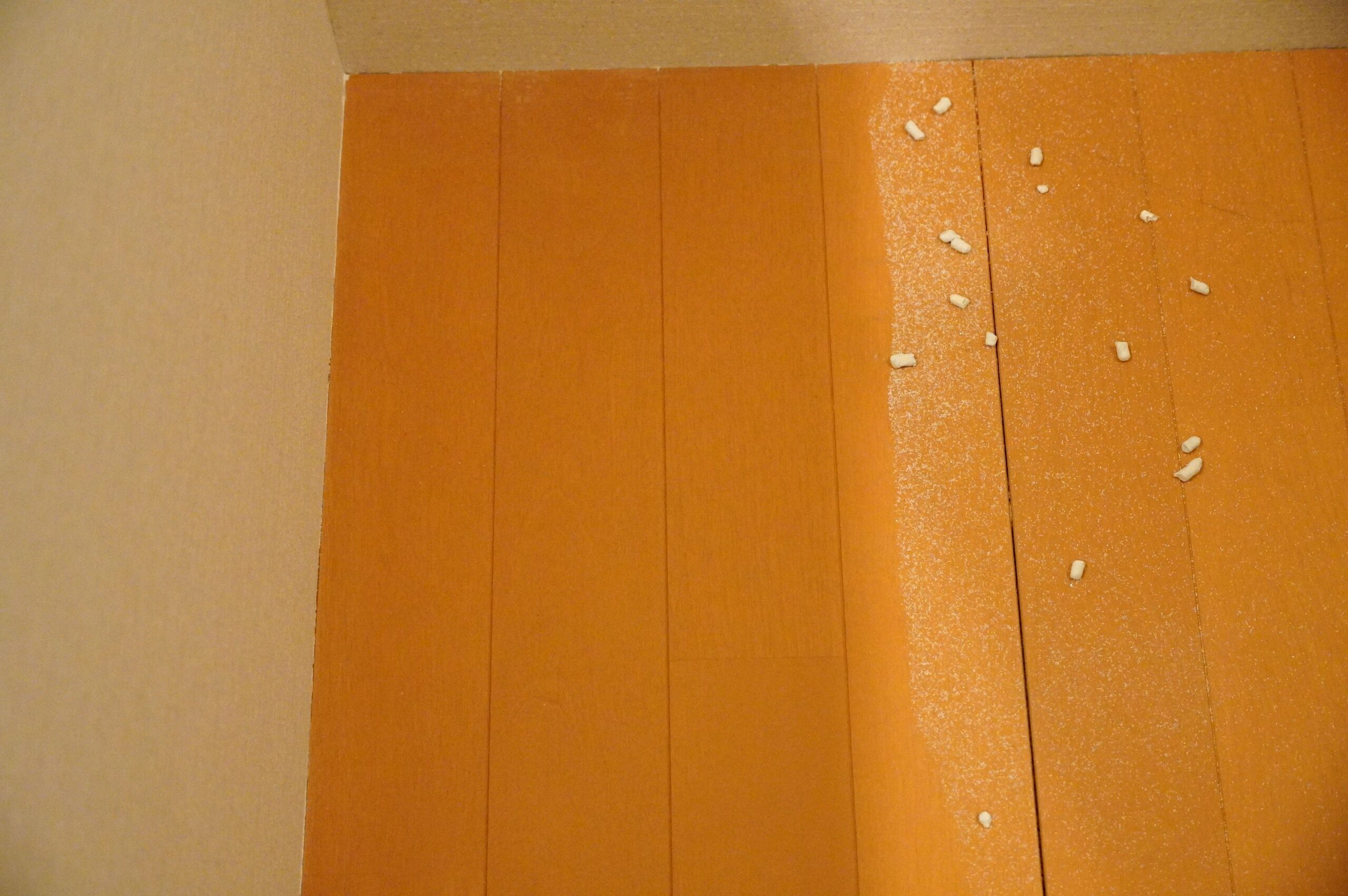 なお、白い床に白い粉をまいてみまたところ、肉眼ではわかりにくかったのですが、照明がついているのではっきりと見えました。